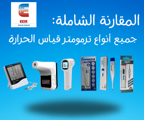 إذا كنت تبحث عن أفضل أنواع الترمومترات في مصر، سواء للاستخدام المنزلي، للأطفال، الرضع أو للعيادات، أو لمراقبة حرارة ورطوبة الغرف، فهذا الدليل من إكسير ميديكال ستور يقدم لك مقارنة كاملة بين كل الأنواع مع روابط مباشرة لكل منتج.